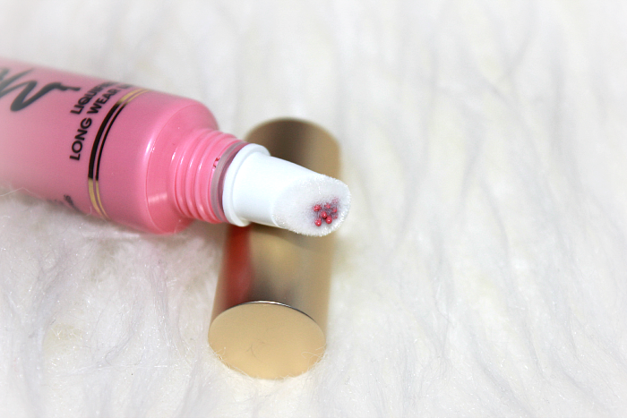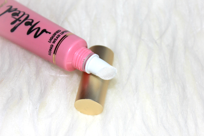 The packaging of these liquid lipsticks was the first thing that really caught my attention. I have to be honest, if the packaging wasn’t so damn cute, I would’ve probably never tried this out. That’s the power of packaging, it can suck you in like no other. The melted lipsticks come in a squeezy tube type packaging with some pretty gold accents and a very beautiful design. The tube comes with an angled velvet tip that makes applying this lipstick super easy and effortless. The only downside of this applicator is that it gets dirty really fast and you can’t really clean it.