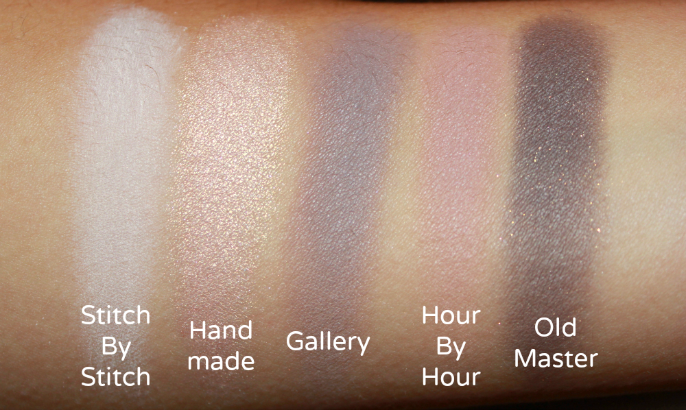 Stitch By Stitch was just a little bit powdery but easy to apply and blend. It’s the perfect base color of brow-bone highlight! Handmade is one of my favorite shades in this palette, it’s extremely soft and has amazing pigmentation. Gallery is the perfect transition shade or it would also look amazing on the actual eyelids. It could’ve used just a little bit more pigmentation but it blends really nicely, same with Hour By Hour which is also an amazing transition shade. Old Master is really unique and different. It’s really soft and easy to blend but I wish it has a little bit more pigmentation.