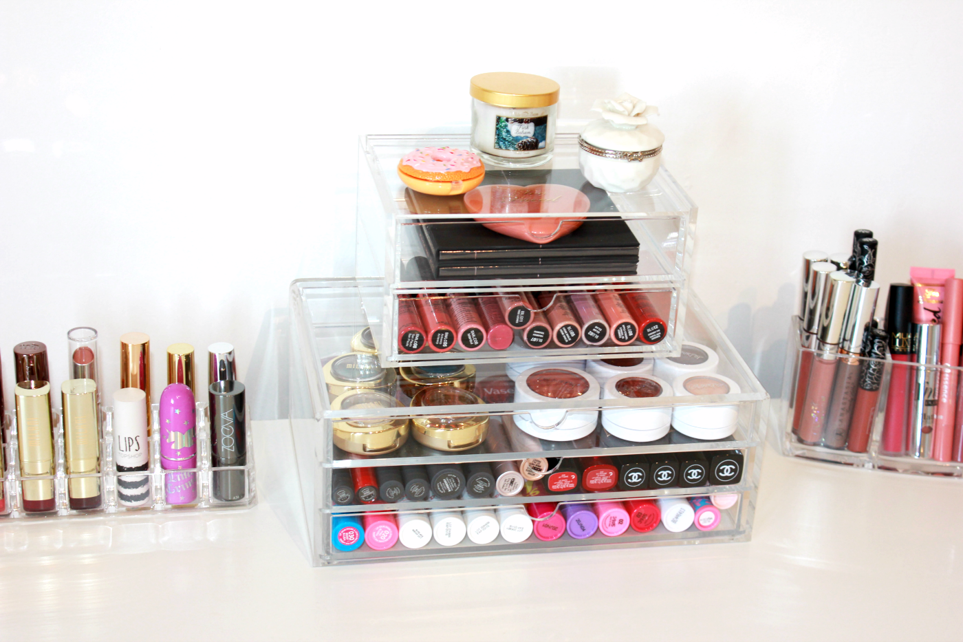 Hey loves! I uploaded a new video today, showing you my entire makeup collection and beauty room tour. As I mentioned a while ago, I moved all my makeup into (half of) a beauty room, with plenty of space to film and keep all of my makeup. Now, I know that my collection is very large, and that nobody ever needs this much makeup but it is a hobby and passion of mine. I love testing and trying out new makeup products and this is my little happy place. So if you’re interested, I listed most of the storage items down below with links to where you can get them.